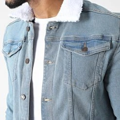 Acheter ✨ Veste Jean Col Mouton 66123 Bleu Denim de Classic Series ❤️