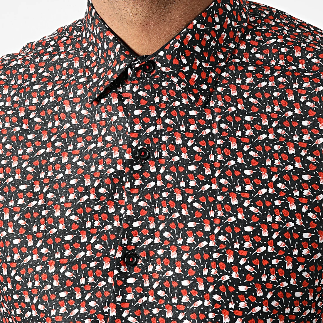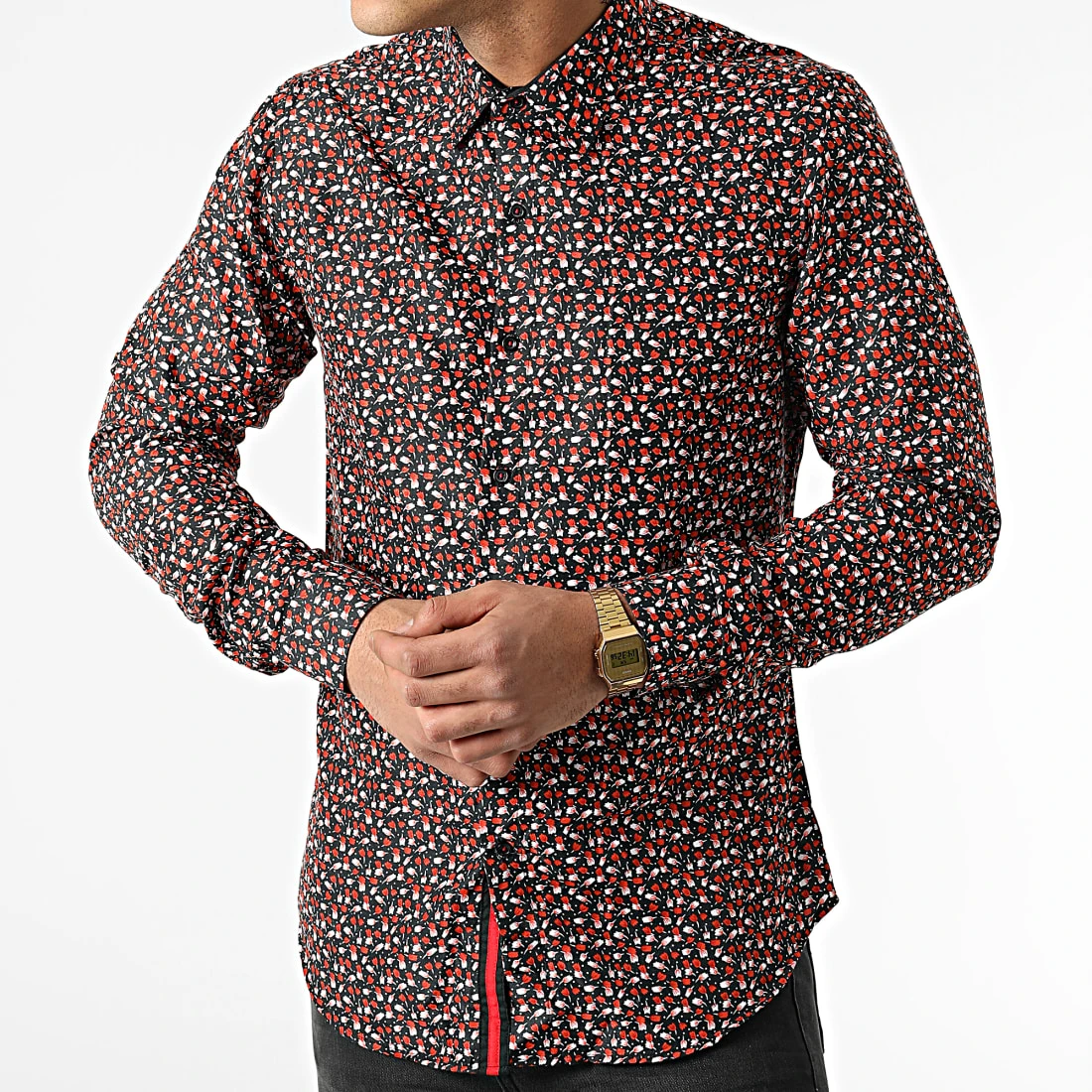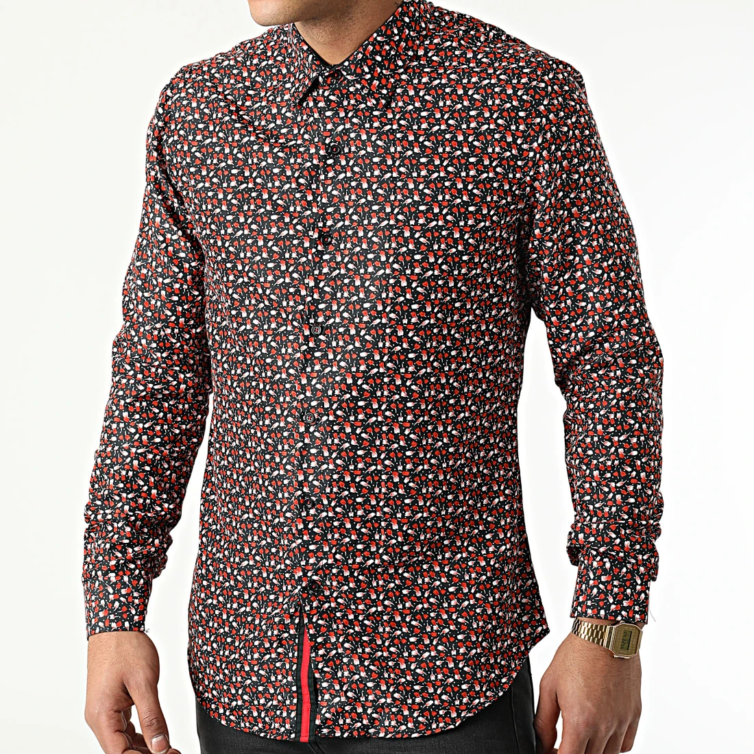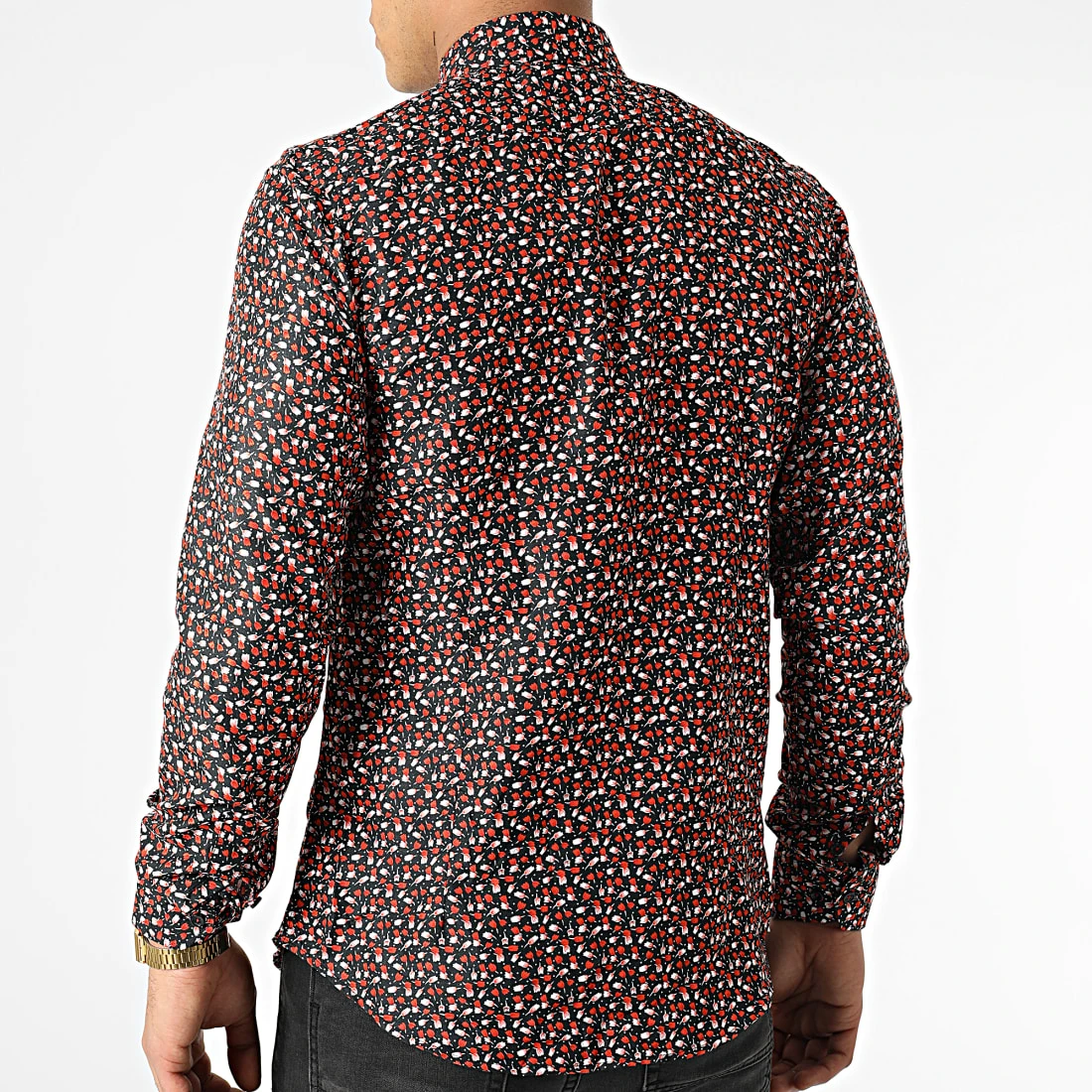 Remise 😍 Chemise A Manches Longues Slim5028 Noir Orange Floral de Classic Series ⭐