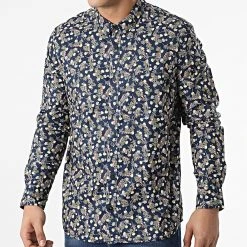 Nouveau ❤️ Chemise Manches Longues Floral H70025 Bleu Marine de Classic Series 🎁