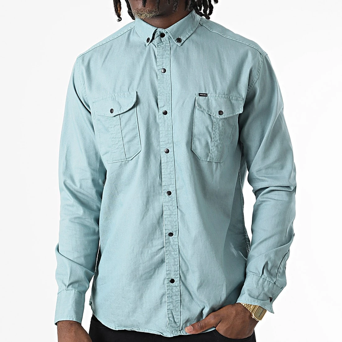 Sortie 👍 Chemise Manches Longues W-323 Bleu Vert Clair de Classic Series ❤️