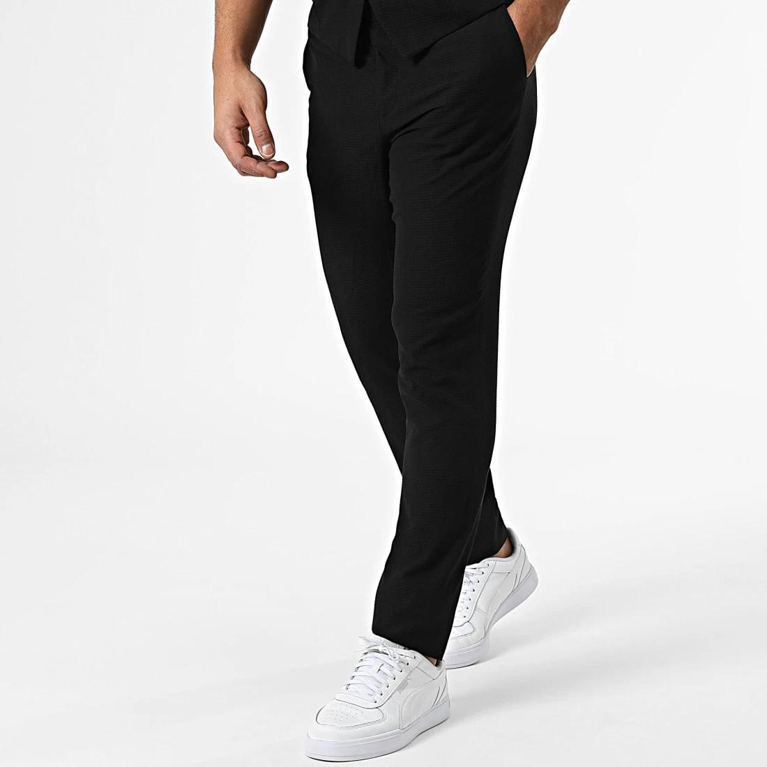 • Ensemble de costume trois pièces composé d’une veste blazer, d’un gilet et d’un pantalon droit élégant