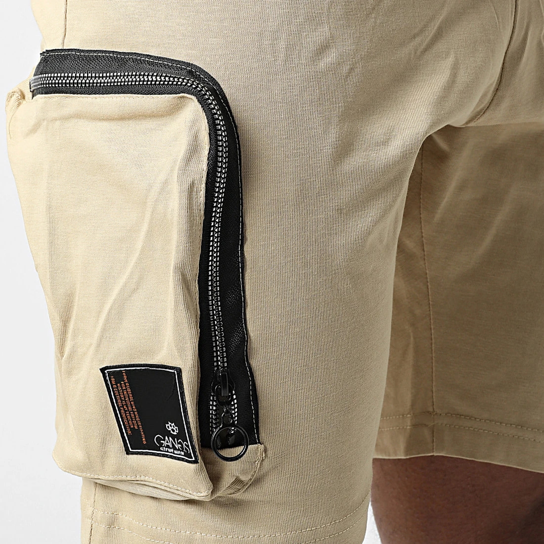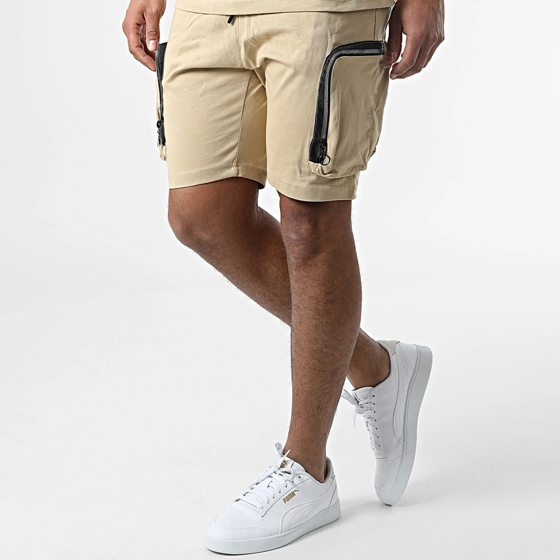Grosses soldes 🔥 Ensemble Tee Shirt A Poche Poitrine Et Short Jogging G22-632 Beige de Classic Series ❤️