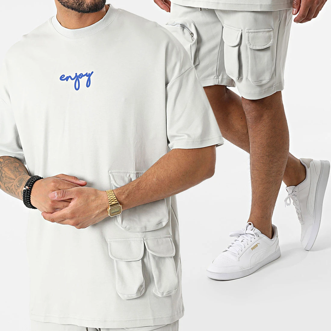 Offres ⌛ Ensemble Tee 🧨 Shirt Oversize Short Jogging Y205UST Gris de Classic Series 🤩