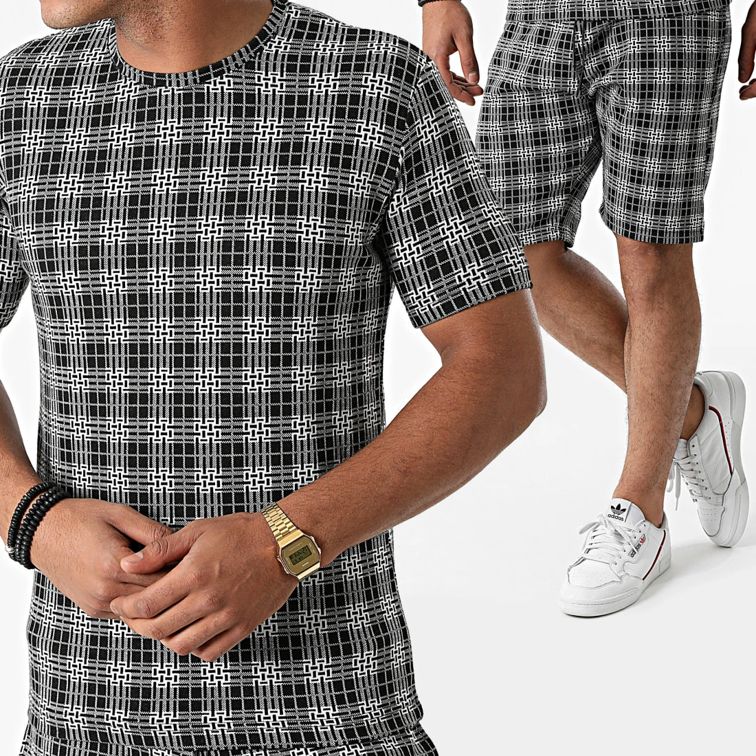 Sortie 🔔 Ensemble Tee 🔥 Shirt Short A Carreaux 156T Noir de Classic Series ⭐