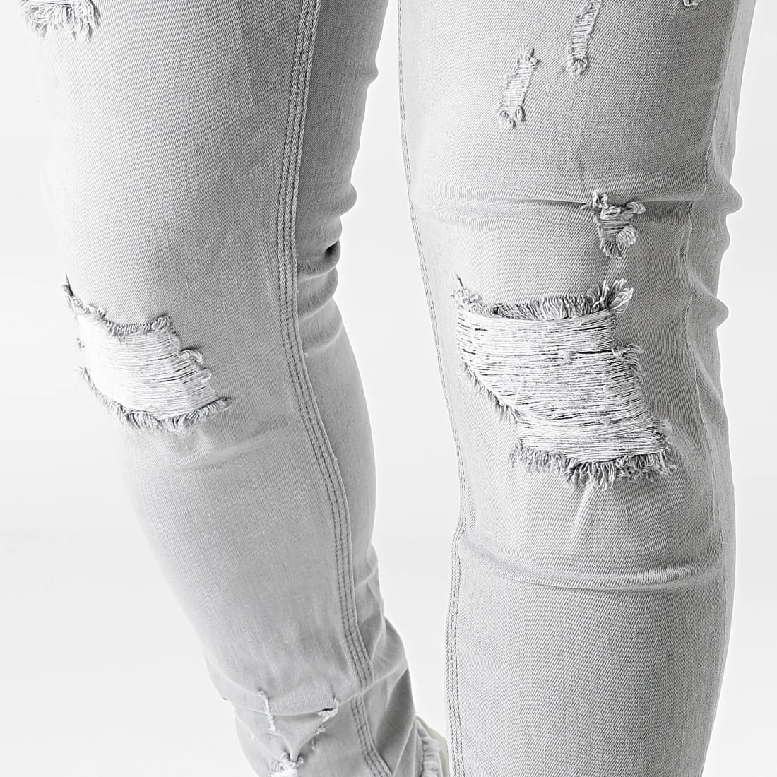• Jean skinny finition usée avec rapiéçages et chevilles effilées