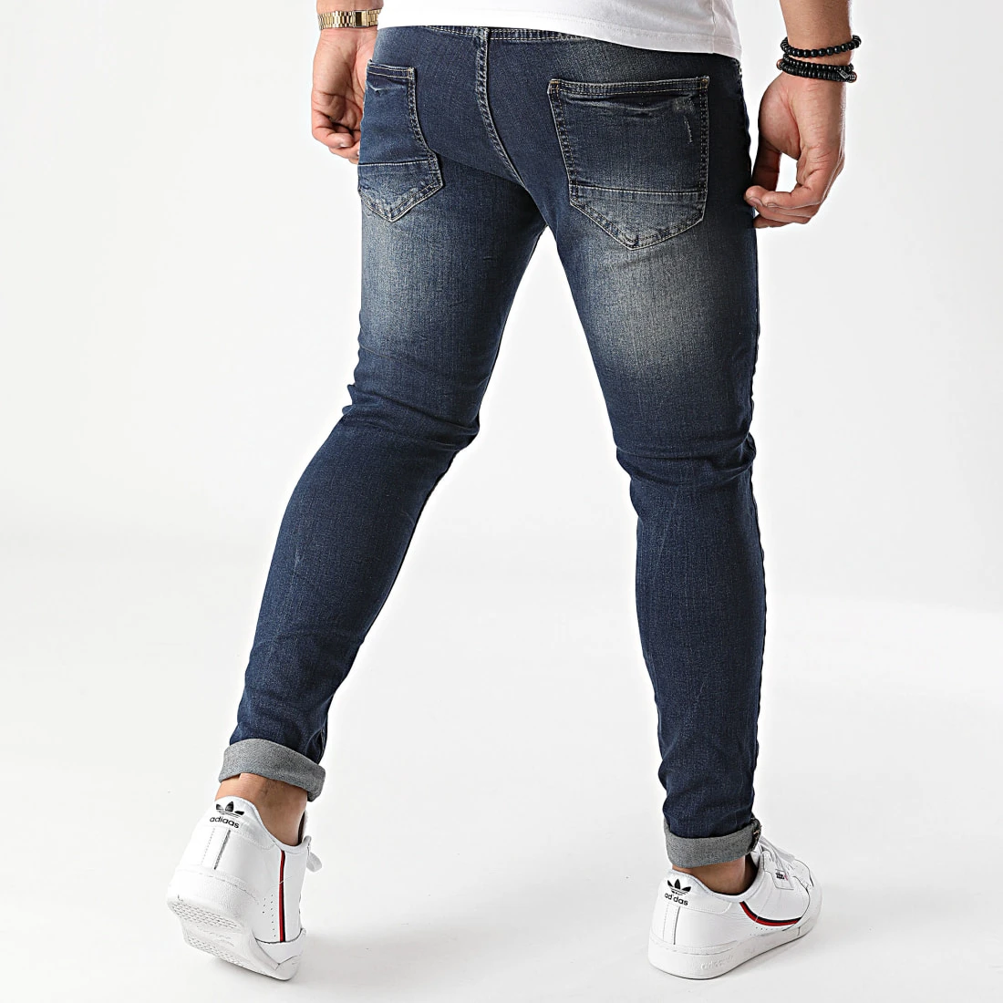 • Jean skinny finition délavée, tachée et usée avec rapiéçages