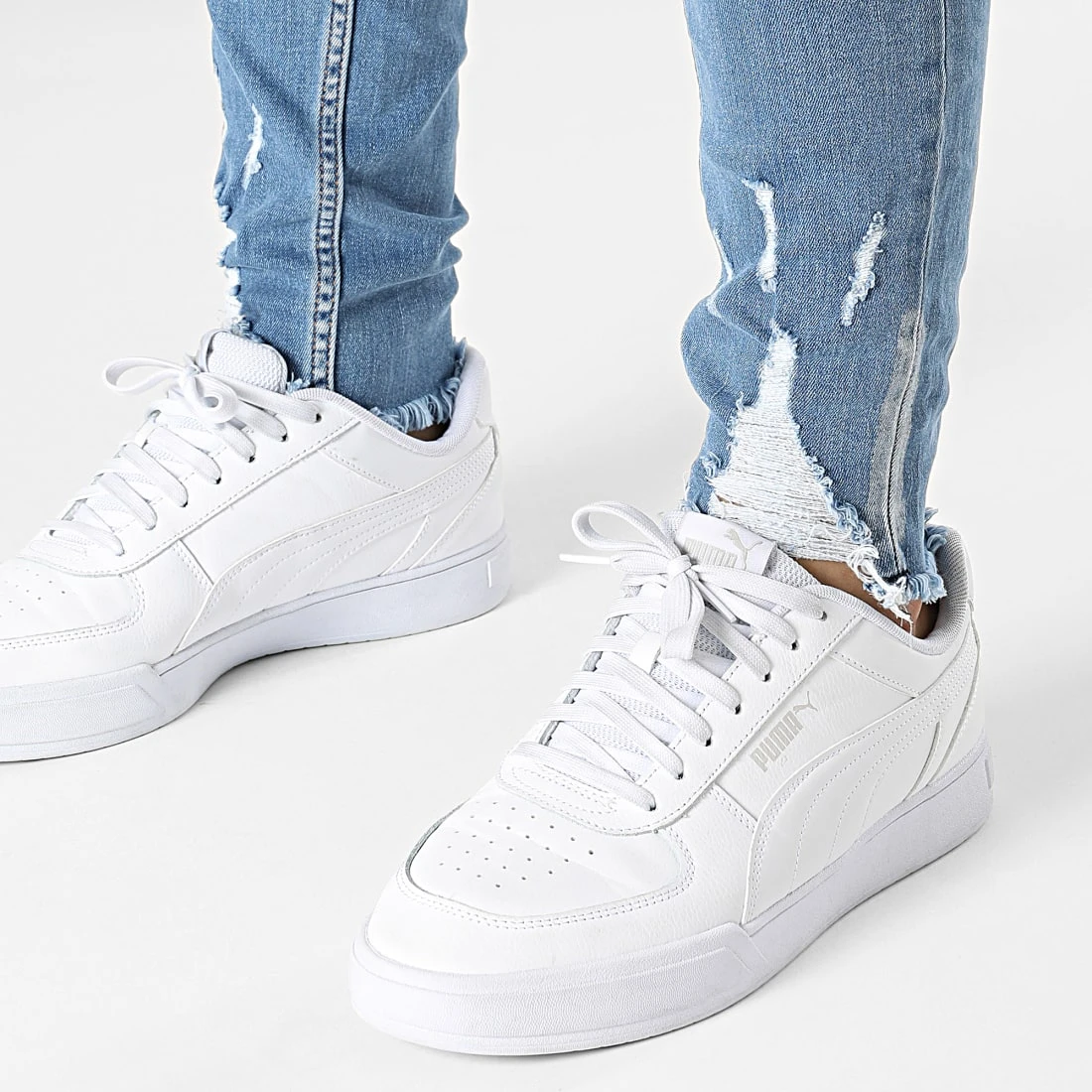 • Jean skinny tendance finition usée et délavée avec rapiéçages