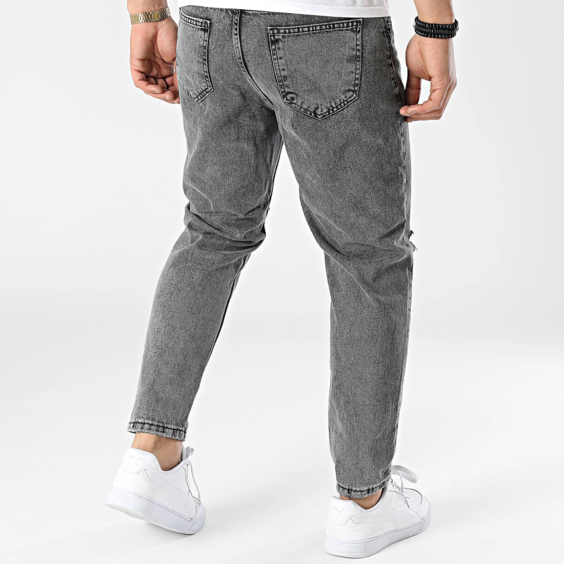 • Jean slim finition délavée et usée avec trous apparents