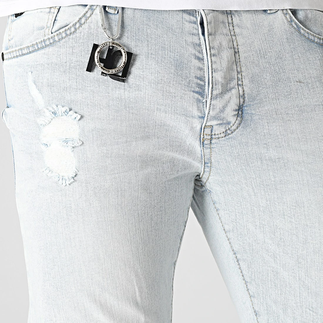 • Jean slim tendance finition usée et délavée avec rapiéçages