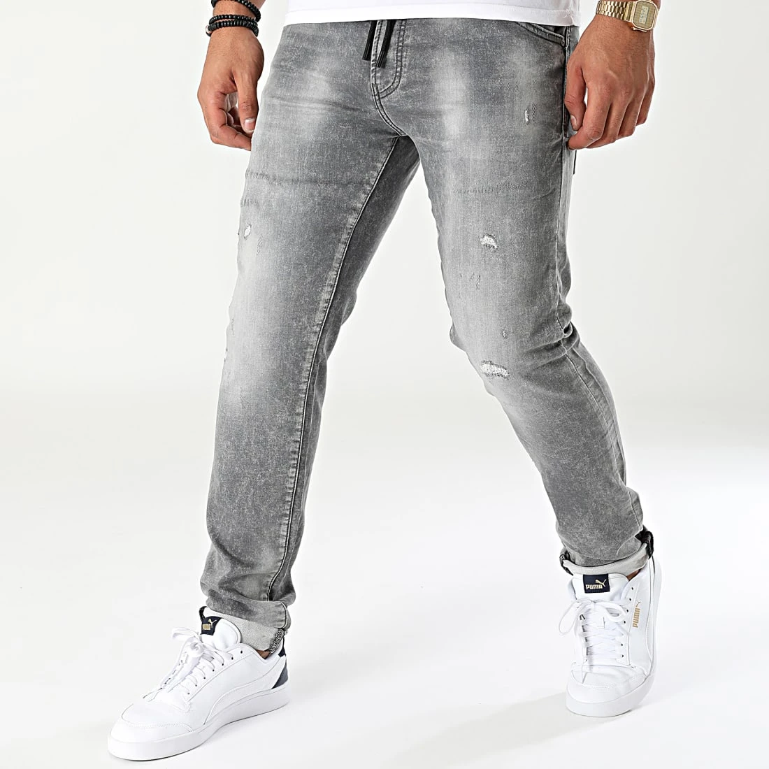 • Jean style jogger finition usée et délavée avec rapiéçages