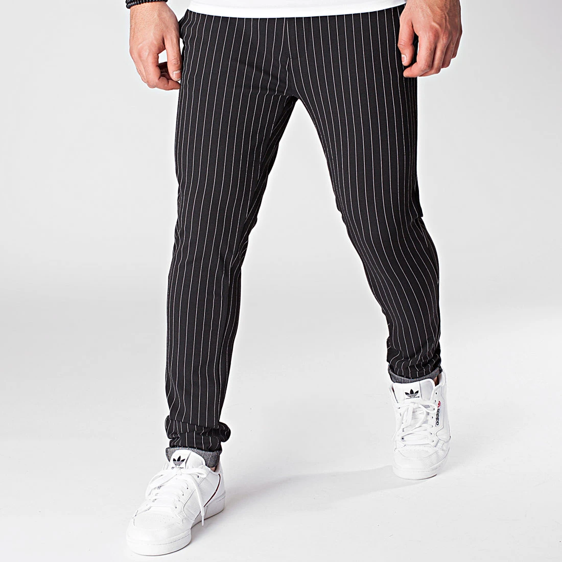• Pantalon chino en tissu stretch avec motif rayures