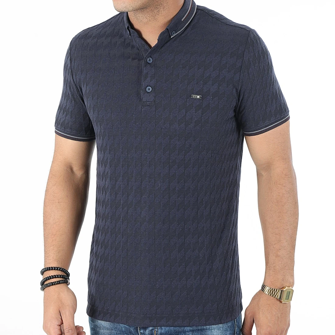 • Polo à manches courtes avec détail métallique sur la poitrine
