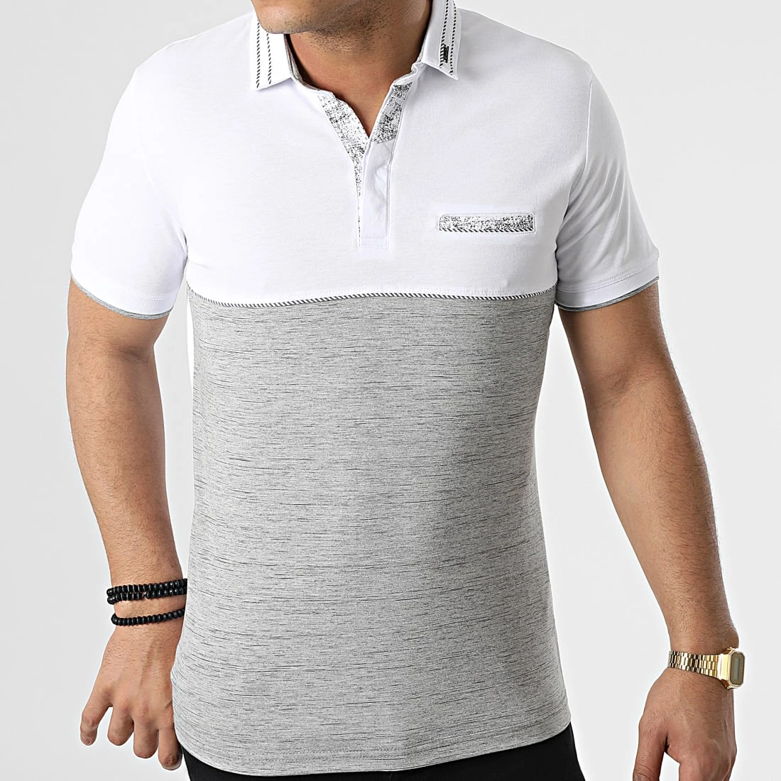 Bon marché ⌛ Polo Manches Courtes 20237 Gris Chiné Blanc de Classic Series ⌛