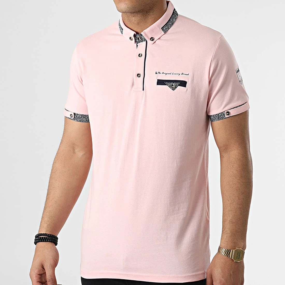 • Polo manches courtes stretch avec poche poitrine décorative