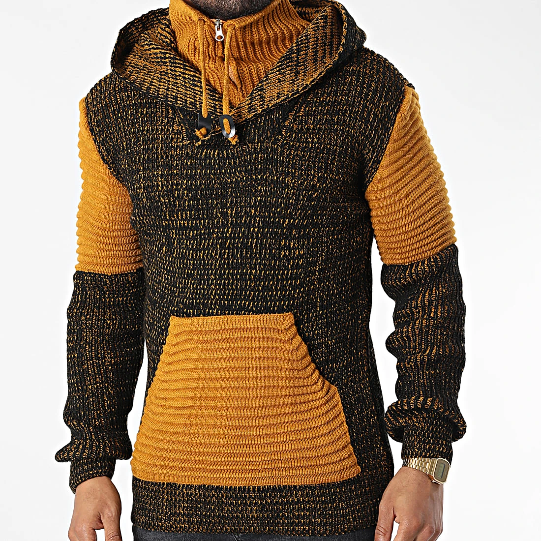 De gros 👏 Pull Capuche 5008 Noir Chiné Orange de Classic Series ⭐