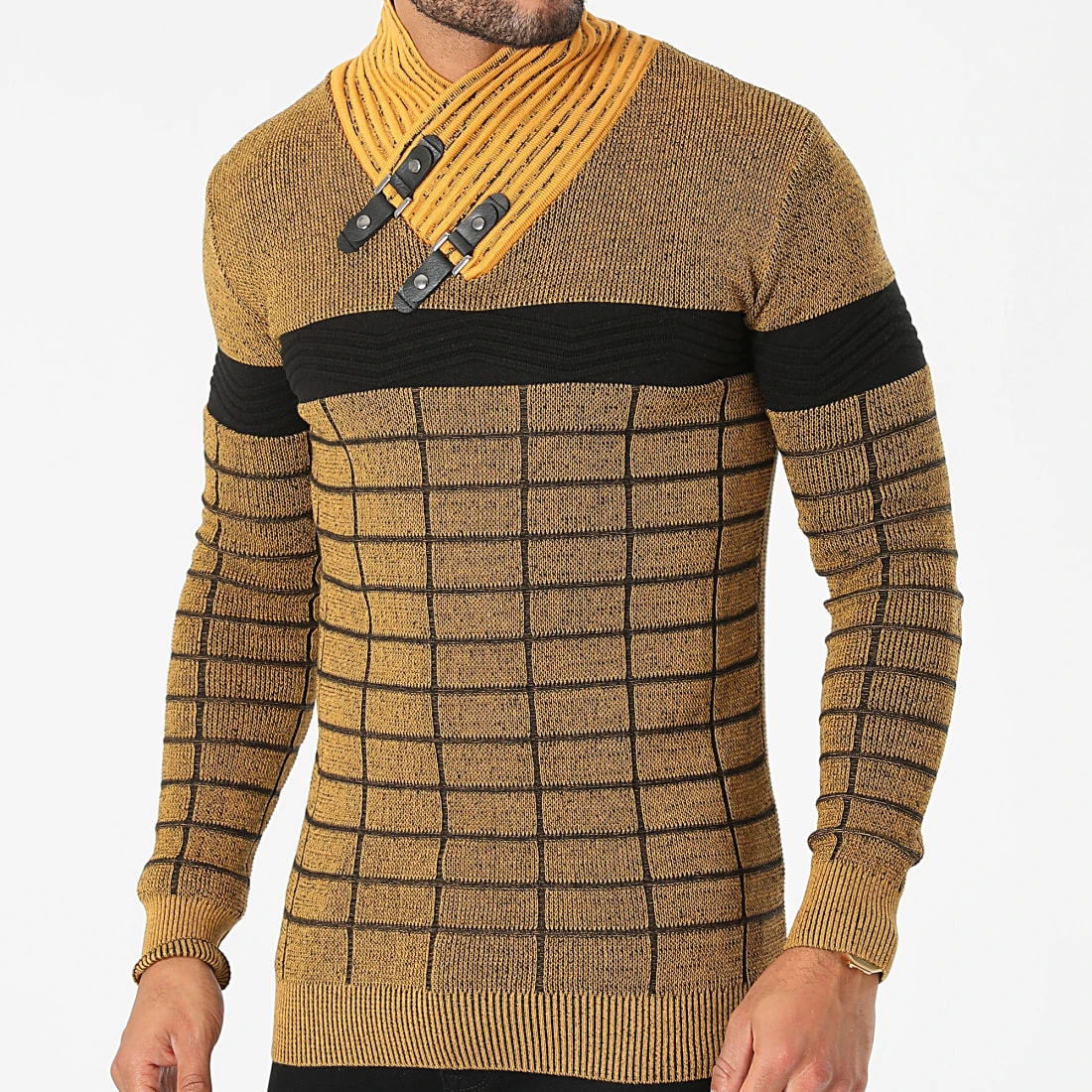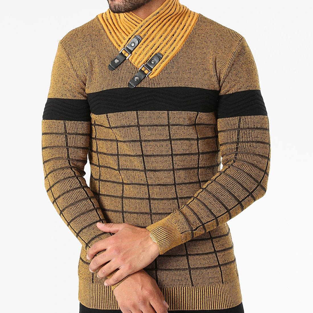 Grosses soldes 🔥 Pull Col Amplified 2124 Moutarde Noir de Classic Series 😀