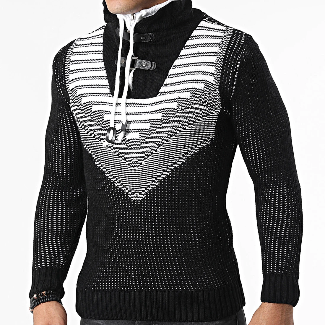 Grosses soldes 😀 Pull Col Montant 5017 Noir Beige Clair de Classic Series ✔️
