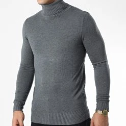 Promo 👍 Pull Col Roulé J663 Gris Chiné de Classic Series 🔔