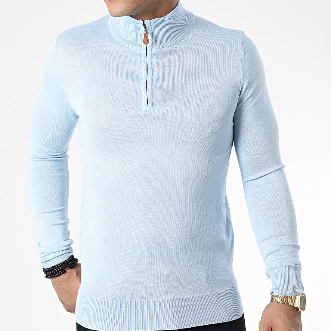 Promo 👍 Pull Col Zippé J666 Bleu Clair de Classic Series 🎁