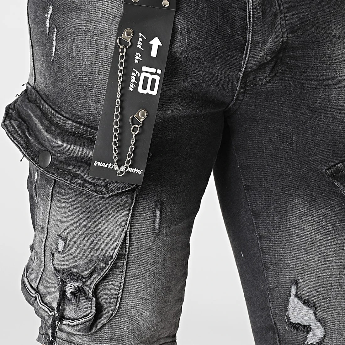 • Short en jean tendance finition usée et délavée avec poches cargo