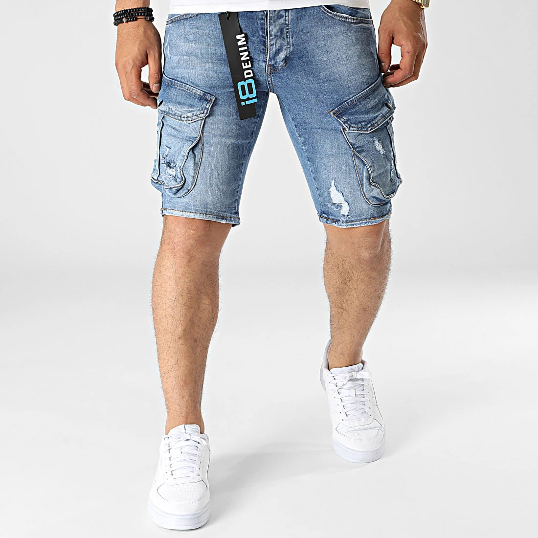 • Short en jean tendance finition usée et délavée avec poches cargo