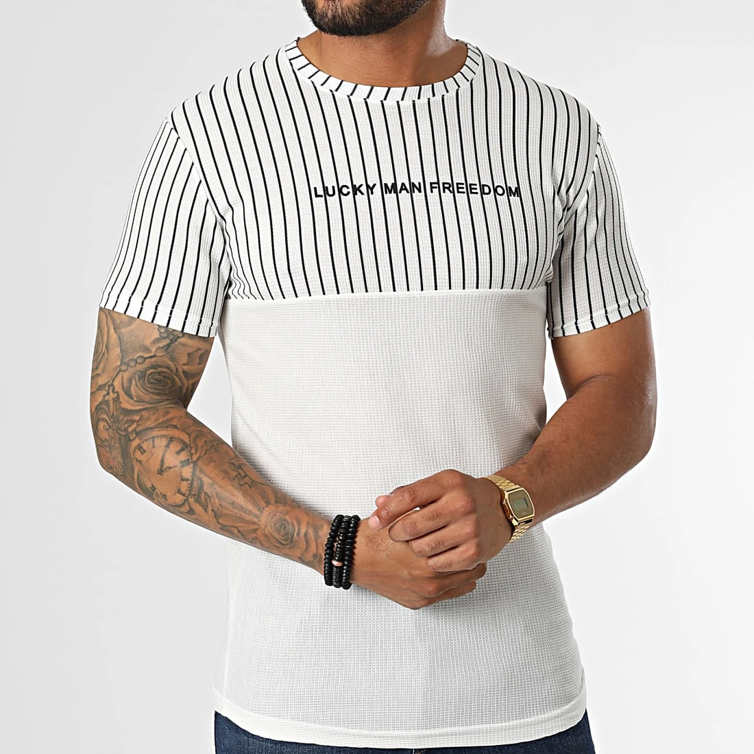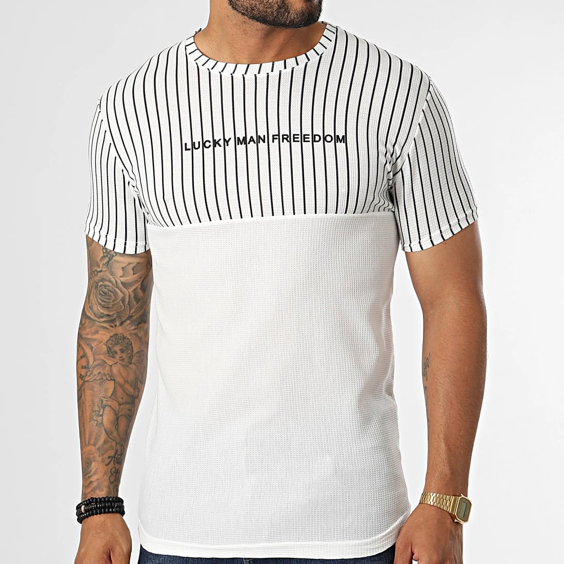 Budget 🎉 Tee 🥰 Shirt A Rayures LM479 Blanc de Classic Series ❤️