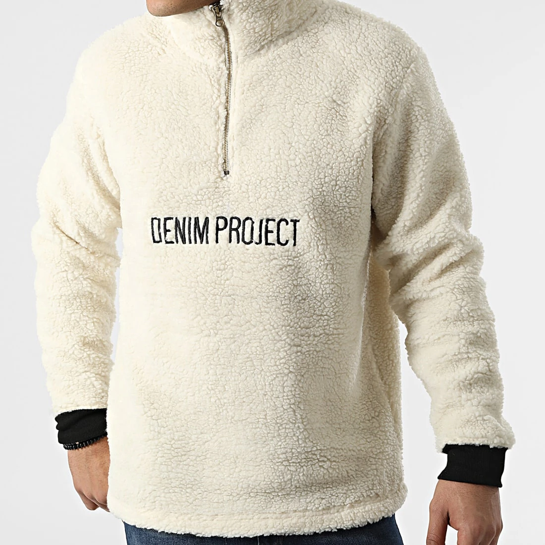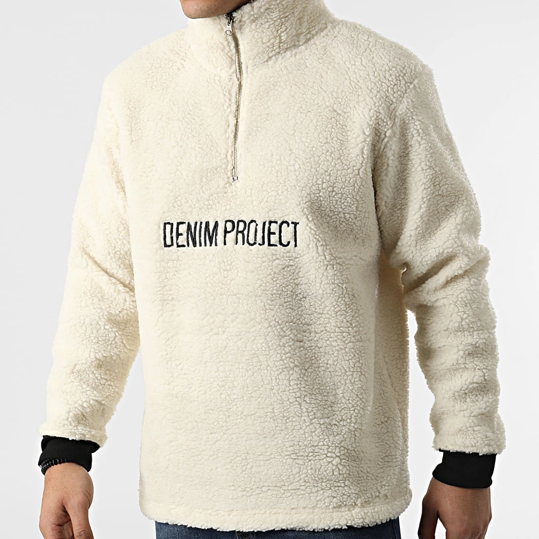 • Veste à col zippée en fourrure synthétique avec visuel Denim Project brodé
